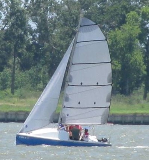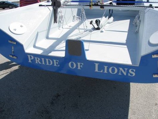 P.O.L. was strip planked cedar with a single chine above the waterline pivot up keel and twin rudders.