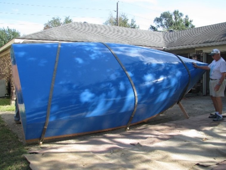 Colson 550 built by Skip Leon Johnson 111. In Texas USA. Single chine strip planked below chine sheet plywood above. Skip came to Australia and stayed a couple of days with us and gave us the “Plank”.